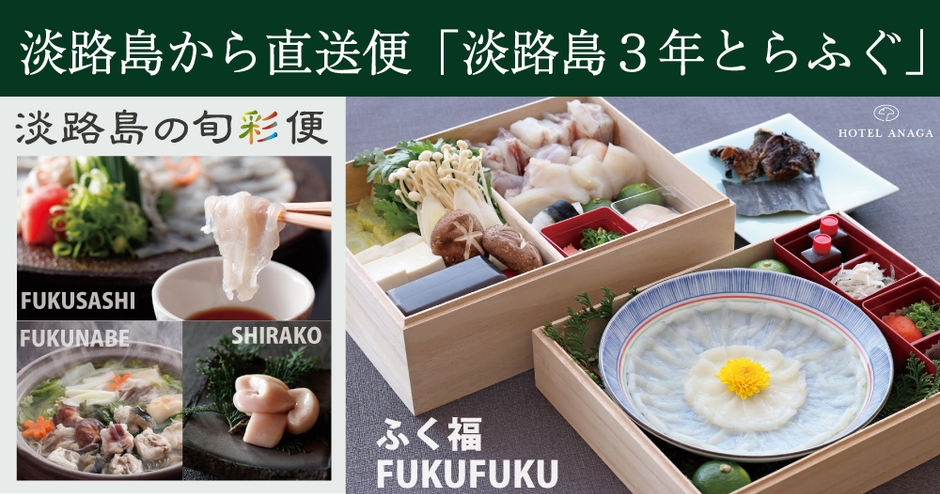 鳴門海峡(大鳴門橋)を目前に臨む淡路島のリゾートホテル、ホテルアナガ(所在地:兵庫県南あわじ市阿那賀1109総支配人:鈴木大輔)では、淡路島の旬をお届けする「淡路島の旬彩便」にて、御食国(みけつくに)淡路島の冬を代表するご当地グルメ「淡路島3年とらふぐ」のふく鍋セットの発送予約を好評受付中です。