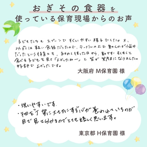 保育園、学校給食に陶磁器製の子ども食器を1,000 万個以上送り出している会社が、子ども、女性、使う人に『優しい商品』を提案します。食器に限らない、様々な商品を提供することで、あなたの欲しいものをみつける思い出の栞~しおり~に…