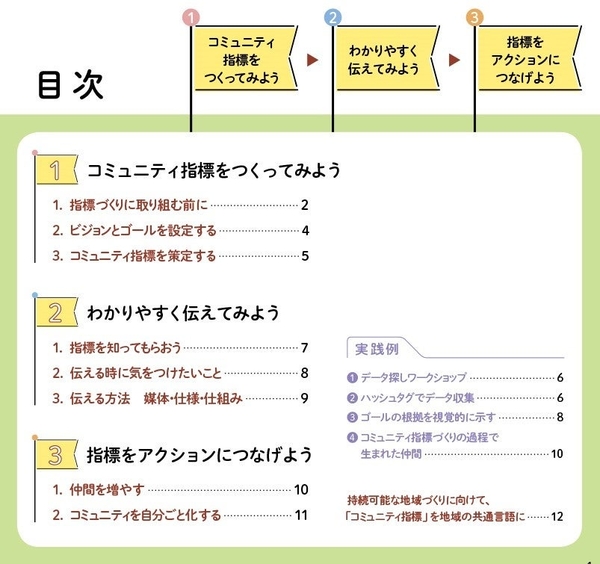 『私たちの未来を紡ぐ「コミュニティ指標」~持続可能な地域づくりに向けた3つのステップと実践例~』の3つの特徴