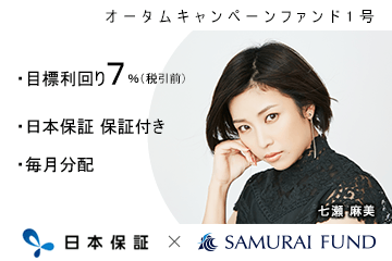 個人投資家にさまざまな投資機会を提供するための、新たな資産運用プラットフォーム「SAMURAI FUND」を運営するSAMURAI 証券株式会社(本社:東京都港区、代表取締役:中山 幹之、以下:「当社」といいます)は、本日、株式会社日本保証とのタイアップによる新商品、『【日本保証 保証付き × 利回り7% × 毎月分配】オータムキャンペーンファンド1号』(以下:「本ファンド」といいます)を公開いたしました。