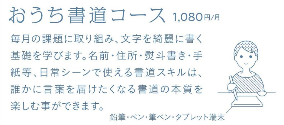 全国どこにいても配信される動画と手本を使って家族で字の練習ができます。毎月1日は「あいうえおシリーズ」、11日は「季節の文字シリーズ」、21日は「浩苑の気まぐれ文字シリーズ」の月3回配信されます。オプションで添削も月額1,080円にて受けられます。