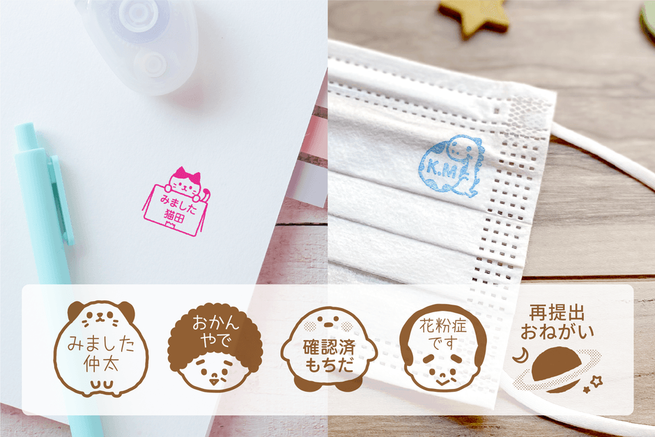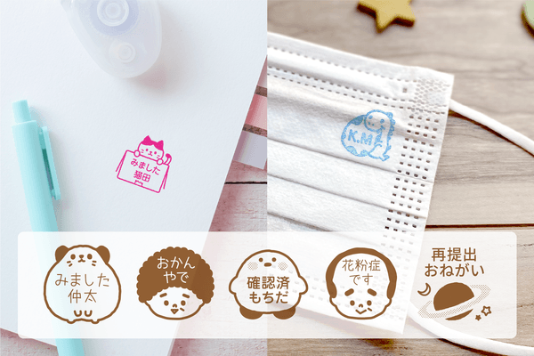 通園・通学がはじまると、毎日つかうマスクへの名前つけが必要になります。不織布マスクにも押すことができるので、表裏の間違い防止や上下の見分けにも便利です。