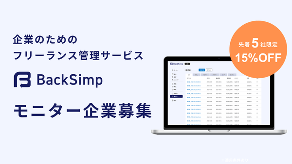 【先着5社】フリーランス管理サービス「BackSimp」、バックオフィス業務の自動化へ向けてモニター企業を募集開始