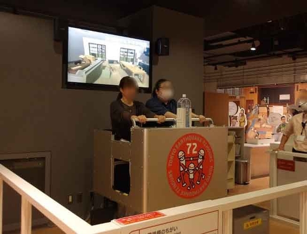 この起震機に搭乗して大きな地震の揺れを体感してみましょう。阪神・淡路大震災、東日本大震災、関東大震災などから、体感してみたい揺れを選べます。