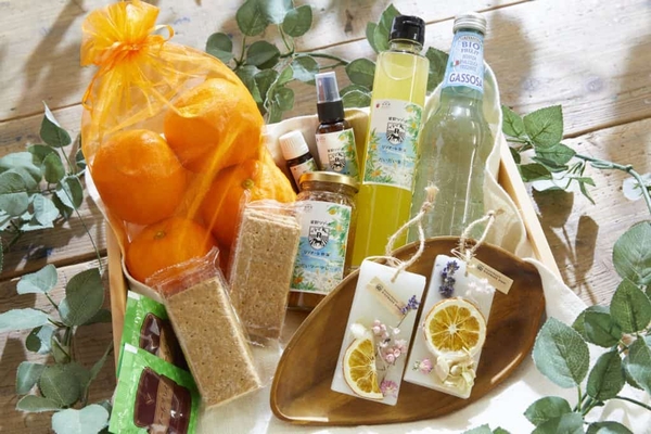 熱海市は全国有数のだいだいの生産地です(*1)。だいだいは、冬に熟した実が春になっても落ちずについていることから「代々続く」が語源となっており、縁起の良さゆえに正月飾りとして活用されてきました。一方で、多汁で芳香に富むものの酸味や苦みが強いため、生食には適していません(*2)。活用方法が限られているので、収穫量に占める出荷量が柑橘類全体では約88%であるのに対し、だいだいは約70%と他の柑橘類と比べて低い傾向にあります(*3)。そんな中、新たにさまざまな形で活用したアイテムを通じて、熱海の名産であるだいだいの魅力を新たに知ってほしいという思いから、このBOXの提供に至りました。