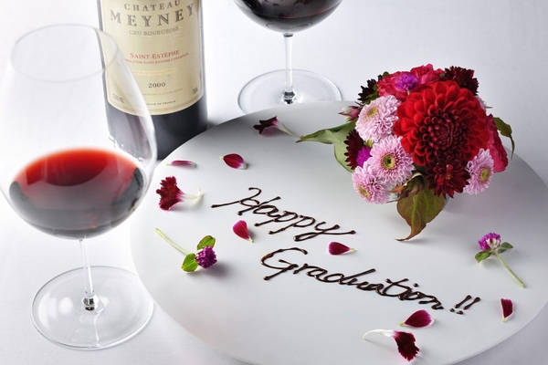 ディナーは、旬の食材を駆使したフランス料理や銘醸ワインが味わえるフレンチレストラン「Sonore」です。卒業をお祝いできるよう、当プラン限定で、2023年に学生を卒業する方の生まれ年のヴィンテージワイン(*2)と、日ごろの感謝の言葉を添えて親に贈ることができるオリジナルのフラワープレートを提供します。生まれ年のワインとフラワープレートで、今までの楽しい思い出を振り返りながら、感謝の気持ちを伝えあい、新たな節目を揃ってお祝いできます。
