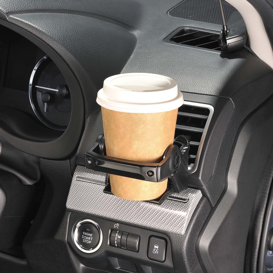 細缶から幅68mmまでのペットボトルや、コンビニコーヒーなどのカフェカップをホールド。使わないときはコンパクトに折りたたむことができ、乗り降りの妨げになりません。