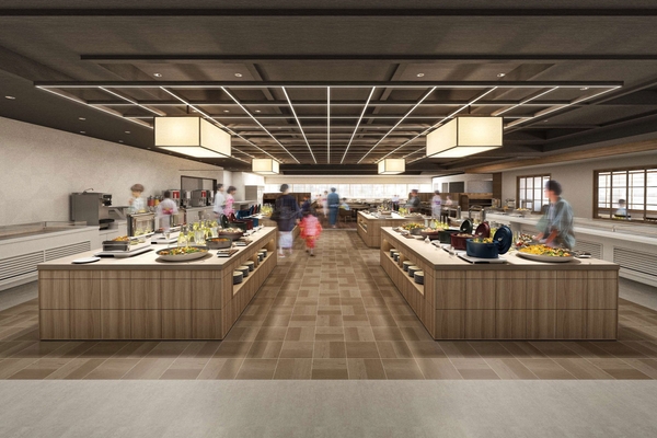 全面リニューアルするレストランは、新旧アートの融合をコンセプトに寺院の天井を現代風にデザインし、食の祭典をイメージした空間に生まれ変わります。料理ボードに所狭しと自慢の料理の数々が並ぶ様子は、まさに食の祭典を彷彿とさせる光景です。日常では味わえない贅沢な気分を、思う存分ご堪能ください。