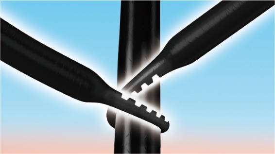 毛髪の一部を細くして凹凸に加工したことで、目立たない自然な結び目を実現。