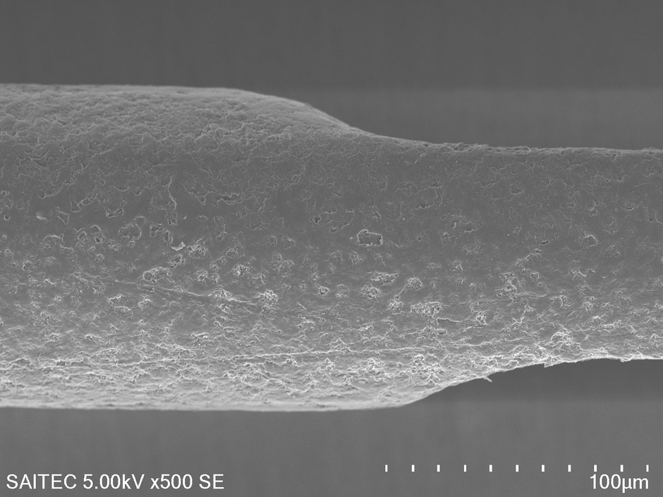 本内容を用いた新増毛法『MRP REAL(マープ リアル)』 凹凸がついた人工毛髪(電子顕微鏡画像)