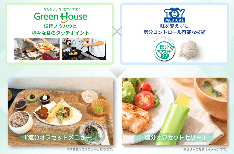 グリーンハウスグループは創業以来、食を通じてみなさまの健康を支えるために、さまざまな食の現場に真摯に向き合ってまいりました。塩分量に配慮した食事は、健康づくりの基本としてこれまでも重要な役割を果たしてきましたが、ライフスタイルや嗜好が多様化する中では、従来の減塩の考え方に加えて、より無理なく続けられる選択肢も必要なのではないかと感じております。今回の共創では、トイメディカルの塩分オフセット技術と当社の調理や栄養の知見を掛け合わせることで、新たな選択肢の可能性を確認することができました。今後も、食の楽しさや満足感を大切にしながら、一人ひとりにあった健康的な食の選択肢を増やしていくことに取り組んでまいります。