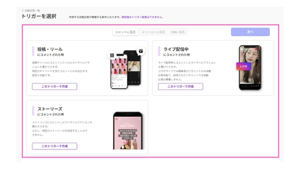 各トリガーの詳細説明が追加され、どのような条件で自動応答が発動するのかが明確になっています。