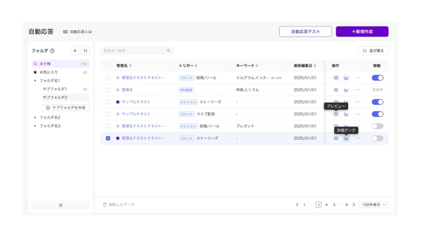 本アップデートでは自動応答の管理画面を一新し、階層化フォルダとフィルタ機能を組み合わせた整理された構造に刷新しました。