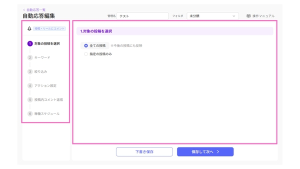 初心者の方でも、流れに沿って進むだけで自動応答の設定が可能になりました。
