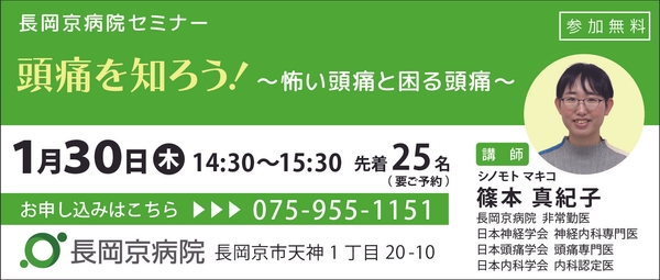 長岡京病院 1月30日(木)に、頭痛に関するセミナーを開催! 頭痛を知ろう!~怖い頭痛と困る頭痛~
