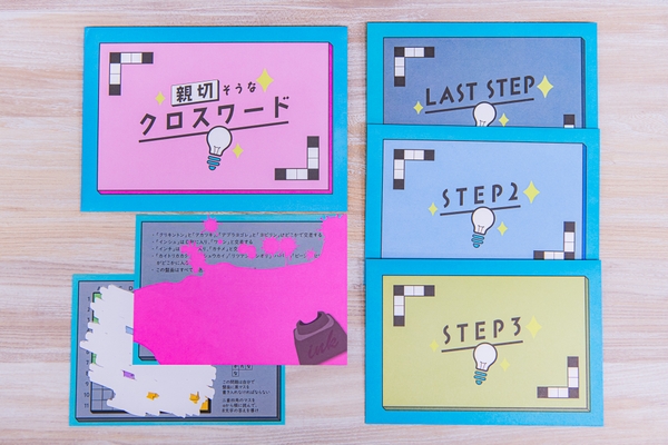 慣れ親しんでいるものの魅力をさらに深掘り、新しい発見をくれる企画が大好きなのですが、この親切そうなクロスワードはまさにその頂点ともいえるでしょう。クロスワードという誰しも馴染みが深い題材で、ここまで驚きを提供してもらえるのか、ここまで面白くなるのかと一枚一枚感動しながら解いていきました。謎解き好きな人に、いま解いてほしい作品です。