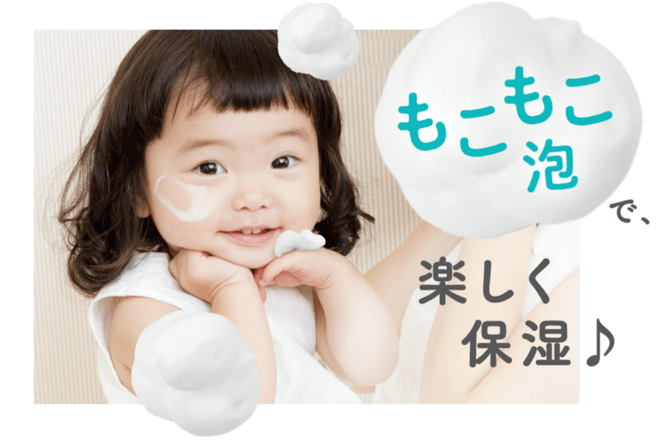 伸び良い泡のテクスチャーが広範囲でも塗りやすく、まるでおもちゃで遊ぶように、お子さんでも楽しんで保湿ができます。