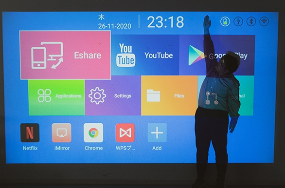 また、無線でスマホやタブレットの画面を投影することもできるため、ゴチャゴチャしているプロジェクターのイメージとはかけ離れたスッキリ、スマートな見た目になります。