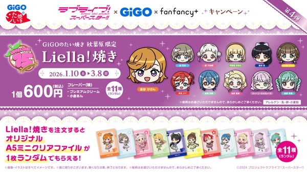 『Liella!』をモチーフにしたコラボたい焼き「Liella!焼き」を販売いたします。「Liella!焼き」ご購入1点につき、オリジナルA5ミニクリアファイル(全11種)をランダムで1枚進呈いたします。