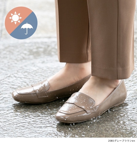 防水テープで晴雨兼用仕様のフラットシューズ。急な雨でも安心。