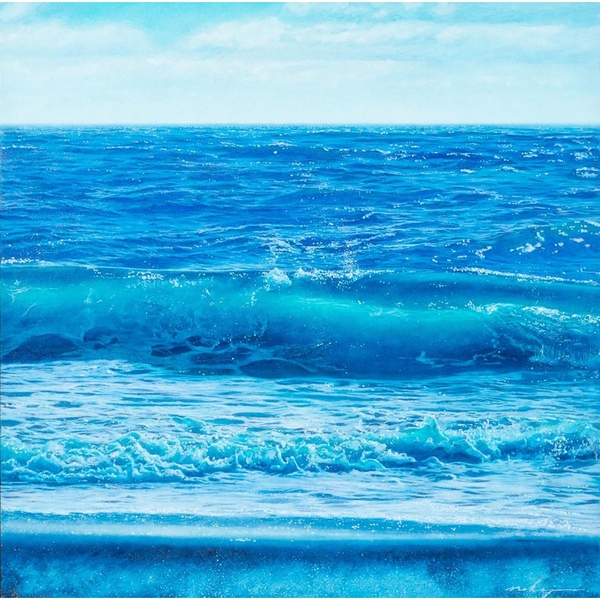 Artfield Artists では出品作品4点がスタートした瞬間に落札されました。TOKYO MXで放送中の「バラいろダンディ」のレギュラーとして、多岐にわたり活躍中の『完売画家』中島健太氏の「匿名の地平線-ver.blue-」を皮切りに、オークション初出品の20代の若手作家 町田結香氏の「FIBBER」「Be a Light」、岡崎実央氏の「Drop Kick」「Diving Body Attack」が、いずれも1秒以内に落札されました。 これらは全て新規会員様による落札で、ダッチオークションの新たな可能性を感じさせる結果となりました。「ひとりの買い手が居れば売買が成立する」「取引のスピードが速い」というダッチオークションの特徴を感じることが出来る場面も多く、熱気とスピード感のあるオークションに会場が盛り上がりました。