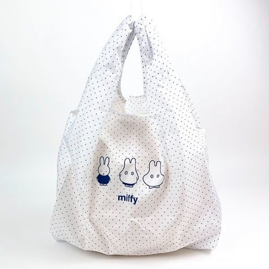 ドット模様が可愛い、おばけミッフィーデザインのエコバッグです。白×ネイビーが爽やかで、とってもシンプルなのにキュート♡
