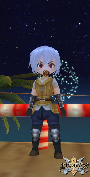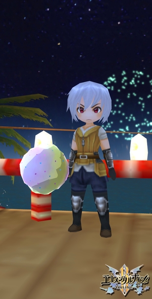 ① 「エレメンタルナイツR」ゲーム内で夏らしい風景やおしゃれを装備してスクリーンショットを撮影