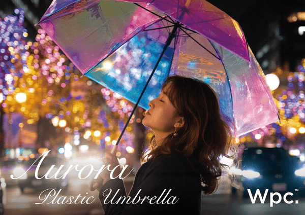 夜もイルミネーションに映える傘、Wpc.のオーロラビニール傘。