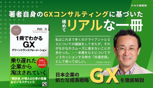 株式会社PHP研究所(京都市南区・代表取締役社長 瀬津要)は、2023 年6月17日にPHPビジネス新書『1冊でわかるGX グリーントランスフォーメーション』(内山 力 著/税込 1,155円)https://www.php.co.jp/books/detail.php?isbn=978-4-569-85466-3を発売しました。岸田政権が経済政策の中心と位置づけ、製造業からサービス業まであらゆる分野で注目されている「GX」について、早くから各企業でコンサルタントとして指導を行なっている著者が、わかりやすくコンパクトに解説します。