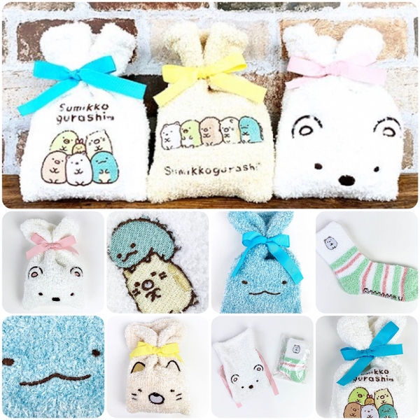 すみっコぐらしのもこもこ巾着入り靴下のご案内でした。