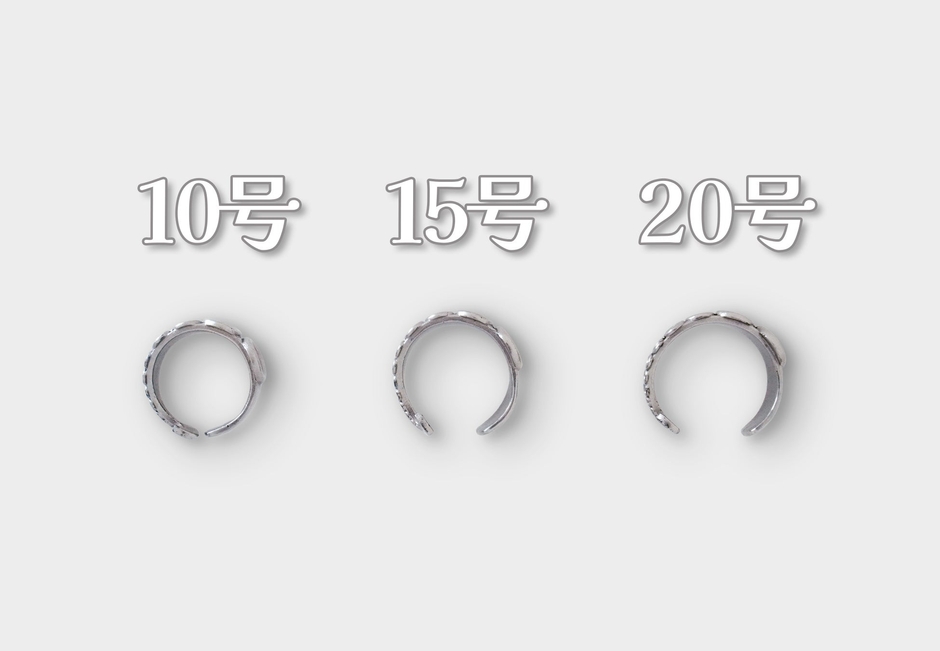 サイズは10号・15号・20号の3サイズ展開で、指の太さに合わせてお選びいただけます。