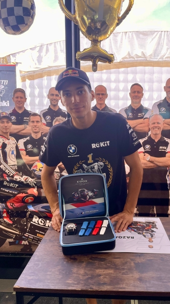 ボックスには、2024年のスーパーバイク世界選手権チャンピオンで、鈴鹿8時間耐久ロードレースの優勝経験もある、BMW モトラッド チーム所属のトプラク・ラズガットリオグル選手が映し出されています。