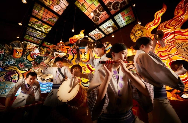 2022年4月1日にリニューアルオープンし、6名のねぶた師の作品で祭りの世界観を表現したショー会場。ここでは、長い冬を耐え、春の訪れを喜び、夏の祭りに情熱を一気に爆発させる、そんな青森の人々の祭りへの想いを表現するショーを毎晩上演します。青森屋のスタッフが演奏するにぎやかな囃子(はやし)と迫力ある山車の運行が見所です。青森ねぶた祭、八戸(はちのへ)三社(さんしゃ)大祭(たいさい)、五所川原(ごしょがわら)立佞武多(たちねぷた)、弘前(ひろさき)ねぷたまつりの4つの祭りを一度に楽しめるほか、それぞれの特徴を際立たせる演出で、青森人のねぶた魂と祭りの熱気を体感できます。