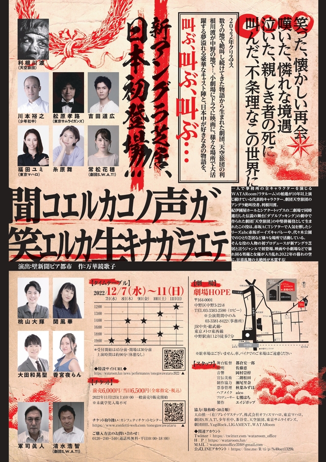 『聞コエルカコノ声ガ笑エルカ生キナガラエテ』が2022年12月7日(水)~12月11日(日)に劇場 HOPE(東京都中野区中野 3-22-8)にて上演されます。