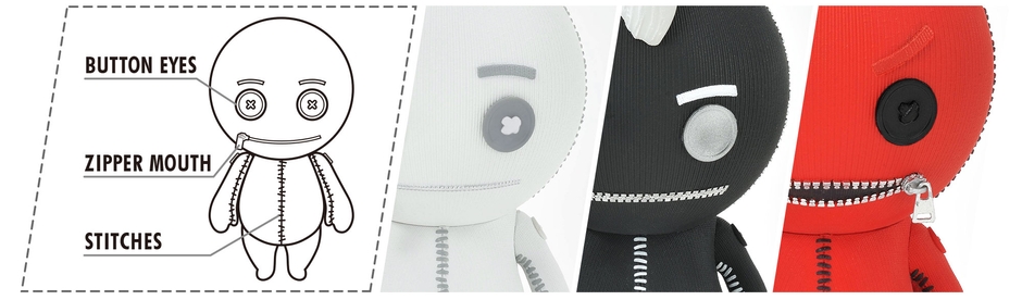 ボタンやステッチを取り入れたかわいらしくも絶妙なデフォルメ感。