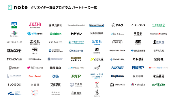 noteクリエイターが活躍する場を広げるために、noteが出版社やメディア、クリエイターエージェンシーなどのメディアパートナーとともに才能の開花を後押しするプログラムです。
