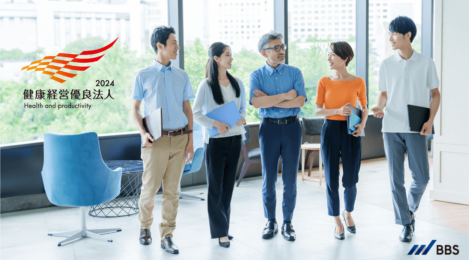 今回で3年連続の認定となり、テレワークやフレックスタイム制度など従来の取り組みをはじめ、女性特有の健康課題に関する研修、グループ会社や社員の家族も参加可能な健康イベントの開催など、BBSが独自に取り組む「健康経営」が評価され、認定の運びとなりました。