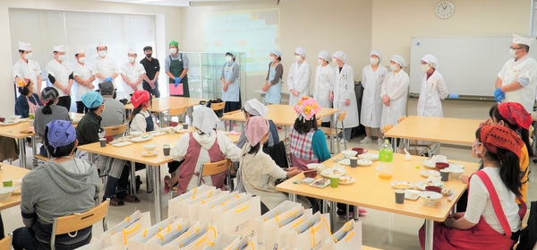 京阪百貨店による「プロによるお魚のさばき方の実演」のあと、プロのアドバイスによる調理、久木教授の「魚の栄養に関するお話し」などの充実した内容でした。学生とっても実践的な学びの機会となりました。