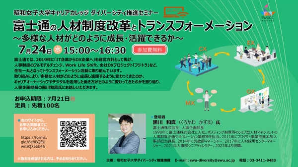 昭和女子大学キャリアカレッジ ダイバーシティ推進セミナー 7/24開催「富士通の人材制度改革とトランスフォーメーション ~多様な人材がどのように成長・活躍できるか~」
