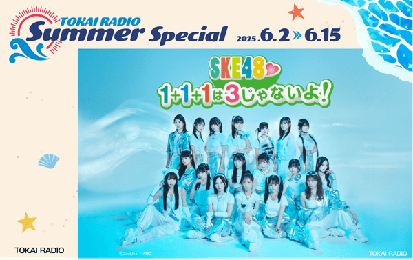 TOKAI RADIOのSKE48レギュラー番組「SKE48♡1+1+1は3じゃないよ!」(毎週土曜日21:00~22:00放送)が6/14(土)21:00より、SKE48第7期ドラフト2期生“7D2”の10周年を記念した特別企画「SKE48 7D2 10th Anniversary Radio 〜みんなでずっとラジオしたい!〜」を放送する。相川暖花・菅原茉椰・浅井裕華・太田彩夏・上村亜柚香の5名が生出演する。