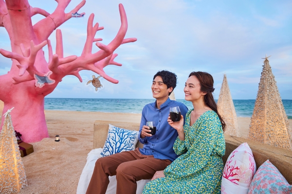 日本最南端の八重山諸島に位置する離島のビーチリゾート「星野リゾート リゾナーレ小浜島」は、2022年12月1日~25日の期間、サンゴ型のクリスマスツリーがビーチを彩る「南の島のサンゴクリスマス」を開催します。ホテルに隣接するビーチには、全長約6メートルのサンゴ型のクリスマスツリーが今年も登場。夜になるとライトアップされたツリーが、小浜島ならではのクリスマスを演出します。ツリーを中心とするビーチのイベントエリアでは、サンゴをあしらったかりゆしウェアに身にまとった「サンゴサンタ」がおもてなし。サンゴを用いて焙煎したコーヒーのリキュールをベースとしたカクテルやお菓子を味わいながら、南の島のクリスマスを満喫できるイベントです。