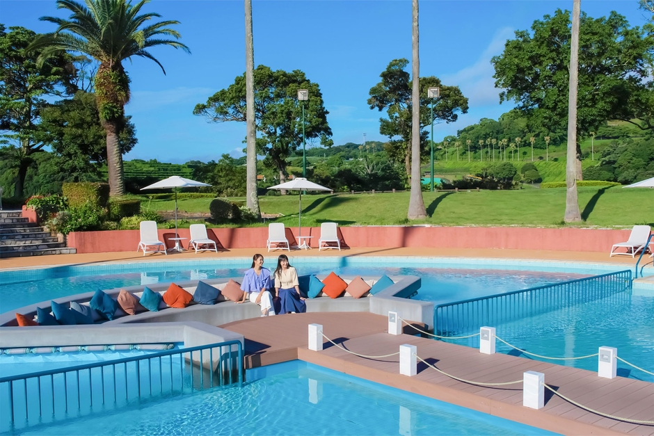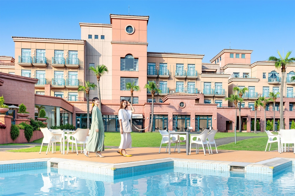 テラコッタカラーの建物、広々とした中庭、その中心のプールやフローティングラウンジ、そしてホテルを取り巻く西海橋の雄大な自然。異国情緒あふれる景色、空間が、一歩足を踏み入れた瞬間にリゾート気分を味わえる当宿には、県内のみならず、九州各県から多くのお客様に足を運んでいただいております。