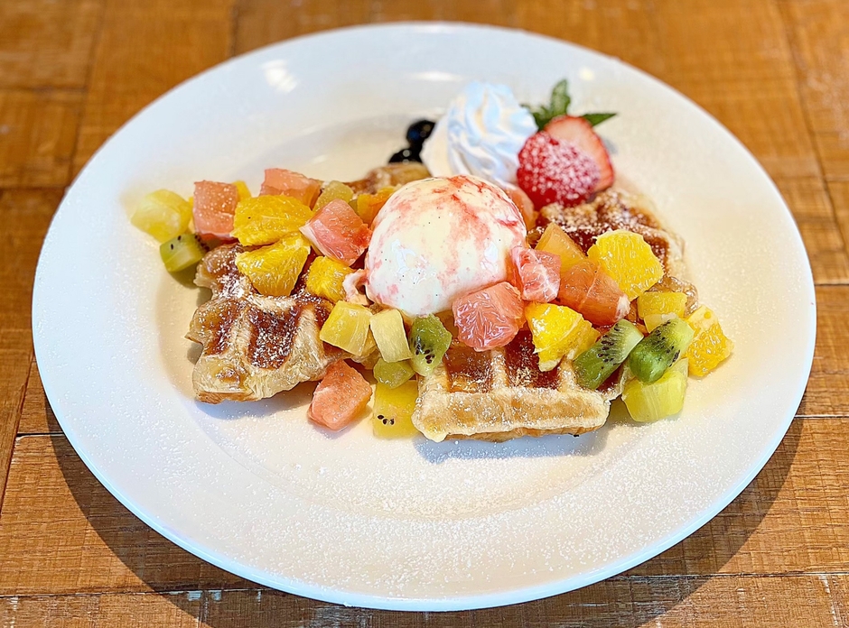 JR南草津駅前のビル最上階(12階)にある「SORA TERRACE(ソラテラス ファーム&グリル)」では、“見た目はワッフル、食感はクロワッサン”で話題沸騰の新作スイーツメニュー「ワッフル&ワッサン」を3種類のラインナップにて販売しています。