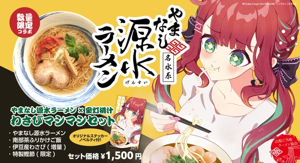 山梨ご当地ラーメン協会(事務局所在地:山梨県甲府市、代表理事:坂本 秀二)は、Vチューバーの宝灯桃汁(ほうとうももじる)とのコラボイベントを2024年12月1日(日)にスタートします。先着200食限定メニューとして「やまなし源水ラーメン×宝灯桃汁 わさびマシマシセット」を販売。