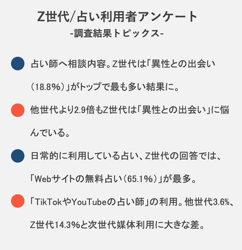 「TikTokやYouTubeの占い師(他世代3.6%:Z世代14.3%)」と、Z世代から占いに触れる媒体として圧倒的な支持を受けている次世代の動画メディアたちです。