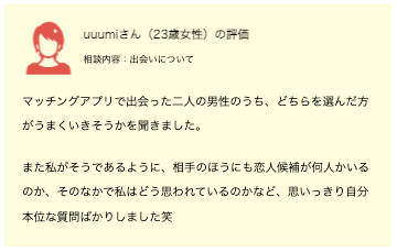 出会いの悩みを中心に恋愛相談が多い印象ですが、一方で仕事や人間関係、人生の選択やお金について悩んでいるZ世代も。