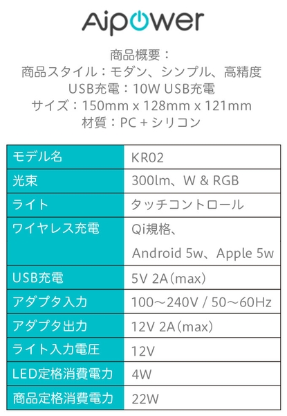 【Qiワイヤレス充電器 × 間接照明】 ありそうでなかった! スマホを置くだけでワイヤレス充電ができる おしゃれなベッドサイドランプ KR02