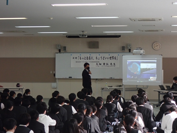 株式会社リアルグローブ(所在地:東京都千代田区、代表取締役社長:大畑 貴弘、以下 リアルグローブ)は、弊社代表取締役 大畑の母校でもある学校法人高水学園 (高水高等学校付属中学校・高水高等学校、所在地:山口県岩国市)で開催された「令和4年度 中六講演会」で、リアルグローブのコーポレートメッセージでもある「もっと自在に、ちょうどいい世界を」をテーマに「遠隔情報共有システムHec-Eyeとドローンを活用した災害対応のDX事例のご紹介」と「起業」について代表取締役 大畑が講演をさせて頂きました。