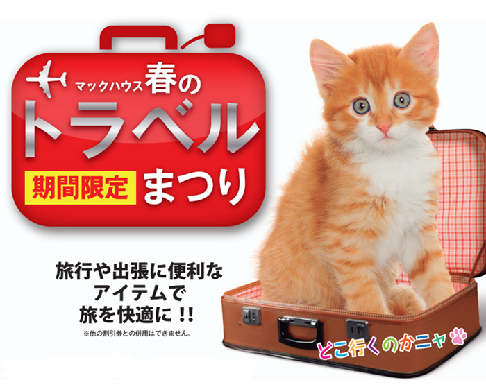 この度、株式会社マックハウス(本社:東京都杉並区/代表取締役社長:白土 孝)は、「春のトラベルまつり」と題し、旅行や出張に便利なアイテムの期間限定セールを開催いたします。