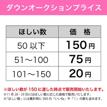 セール対象商品ページの「ほしい!」ボタンをクリックして、たくさん「ほしい!」がつけばつくほど、販売価格がさがっていくシステムです♪